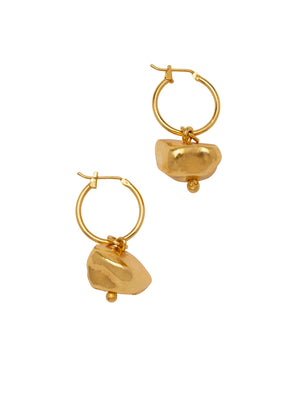 Raw gold nuggets meet refined luxury in this versatile charm pair. Designed to swap seamlessly onto any hoop from our Hooptastic, Kahlo Click-Top, or Bernini collections, these 18K gold-plated charms let you transform your look instantly. Mix metals for edge—pair them with silver-plated hoops for striking contrast, or match your existing plating for cohesive elegance. It's like doubling your earring wardrobe without the commitment. Strike gold and elevate your hoop game.