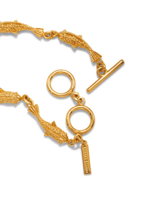 Adorn your wrist in the finest 18K Gold Plated fashion with this stunning Koi Fish Link Bracelet. Its 7-inch, 1-inch extension chain and convenient toggle clasp guarantee a secure fit, making sure you stay effortlessly stylish and shining bright.