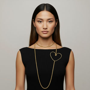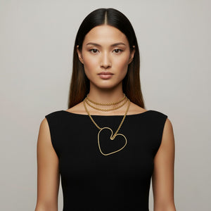 Abrace la expresión romántica con nuestro collar de cadena bañado en oro de 18 quilates que presenta un cautivador dije de corazón figurativo. Su cierre de langosta garantiza un estilo fácil, incluso se puede usar como un collar abultado, mientras que la estructura liviana garantiza comodidad y belleza. Deje que su fashionista interior brille a través del dije de corazón ondeante fijado a esta importante cadena.