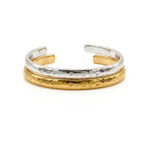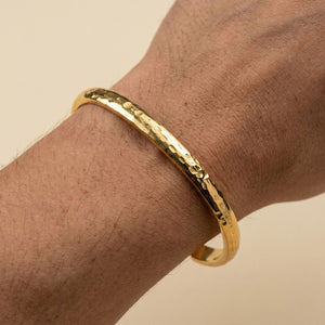 Le bracelet manchette plaqué or 18 carats est disponible en une seule taille, soit une circonférence de 7,5 pouces, le bracelet constituant 6 pouces de cette circonférence. Il mesure 2 pouces de large sur 1,5 pouce, ce qui le rend étonnamment petit mais s'adapte parfaitement à la plaque assortie ou contrastante d'une montre ou il est parfait tout simplement suspendu seul.