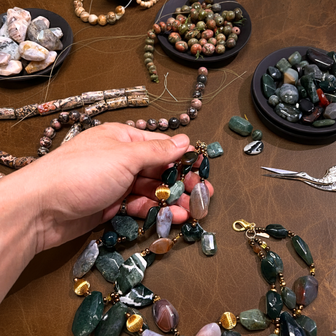 We source premium gemstones and natural pearls from trusted global suppliers—ensuring every bead meets our standards of quality, polish, and craftsmanship.
