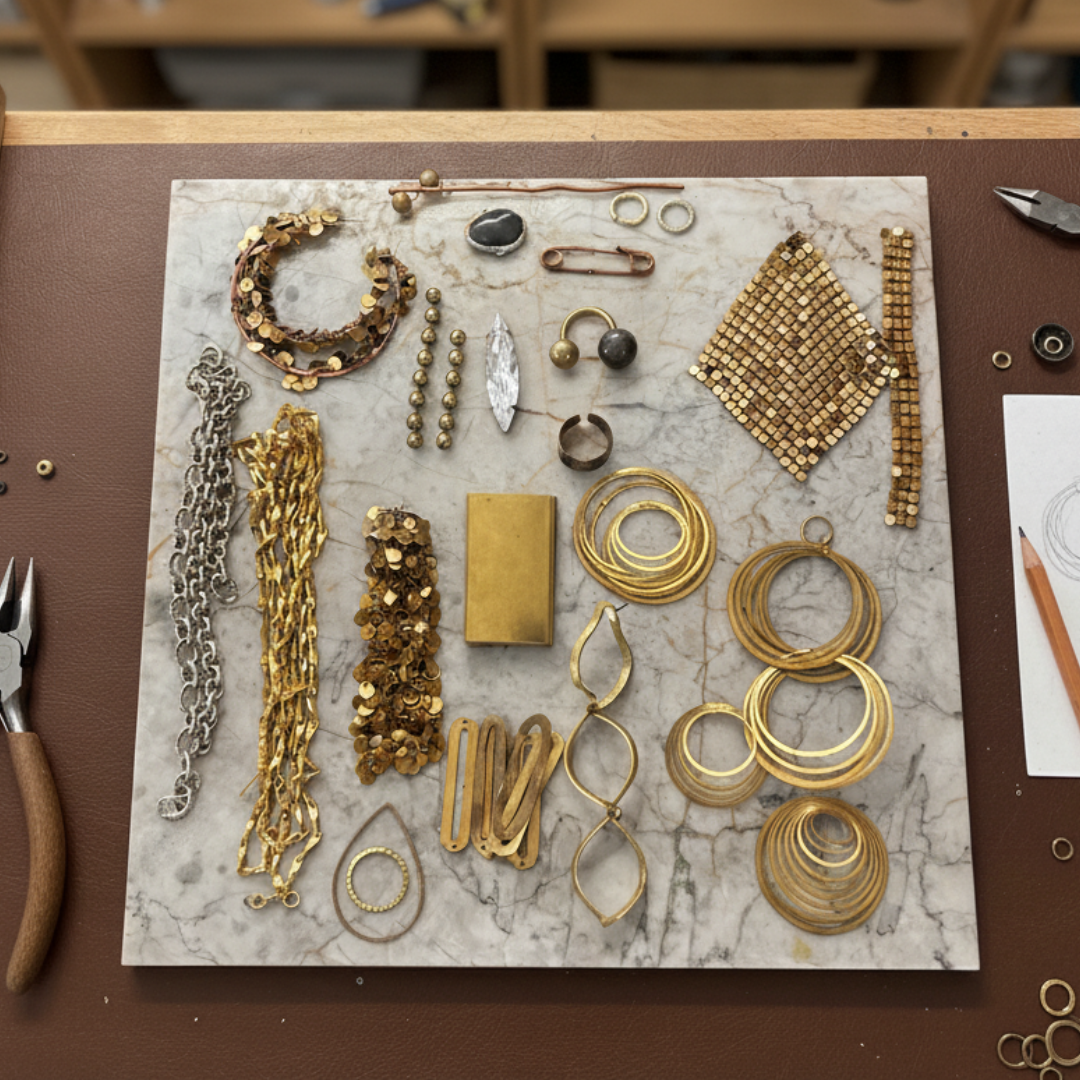 A foundational metal known for its strength and warm undertone, Brass serves as the base for most of our plated pieces. Its surface responds especially well to 18K Gold Plate, offering consistent tone and lasting durability across our jewelry and custom findings.