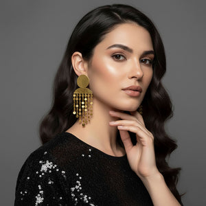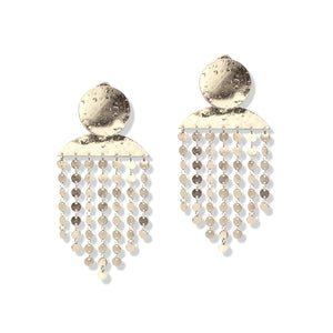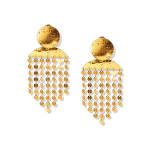 Make a statement with the Koren Clip On Earrings—our signature hammered finish pairs beautifully with cascading circular paillettes that dance and shimmer with every movement. The oversized, cushioned clip ensures all-day comfort while the luxe 18k gold plating catches the light from every angle. At 4.5 inches long and a substantial 17 grams, these earrings deliver serious presence without the commitment of pierced studs.