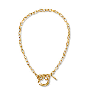 Front-and-center glamour meets everyday versatility. This 18-inch chain necklace flaunts a circular pave clasp adorned with brilliant Cubic Zirconia—because why hide your hardware? Layer it solo for understated sparkle, or snap on one of our charm pendants to switch up your vibe whenever the mood strikes. Your necklace, your rules.